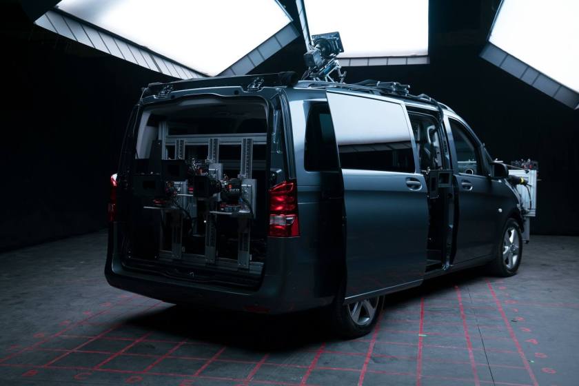 Christopher Probst: The Ultimate Plate Van™ I helped create for David Fincher and his upcoming series, Mindhunter. 11 Red Epic Dragon cameras all controlled via one master switch from inside the luxurious bench seating in the Mercedes Metris Minivan. Designed between Fincher, Jarred Land, key grip Eric Budlong and myself. The idea behind the setup is, 11-12 cameras are rolled simultaneously covering all pre-determined angles, focal lengths, heights and degrees of tilt that will be shot of the actors in the corresponding picture car on our custom greenscreen process stage.