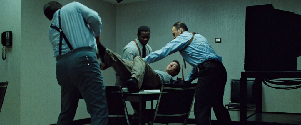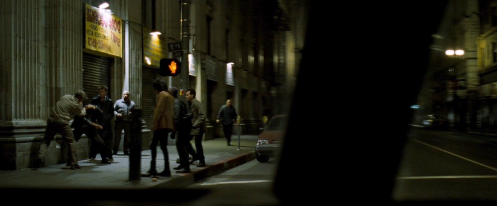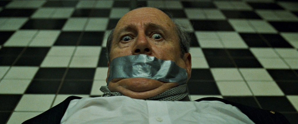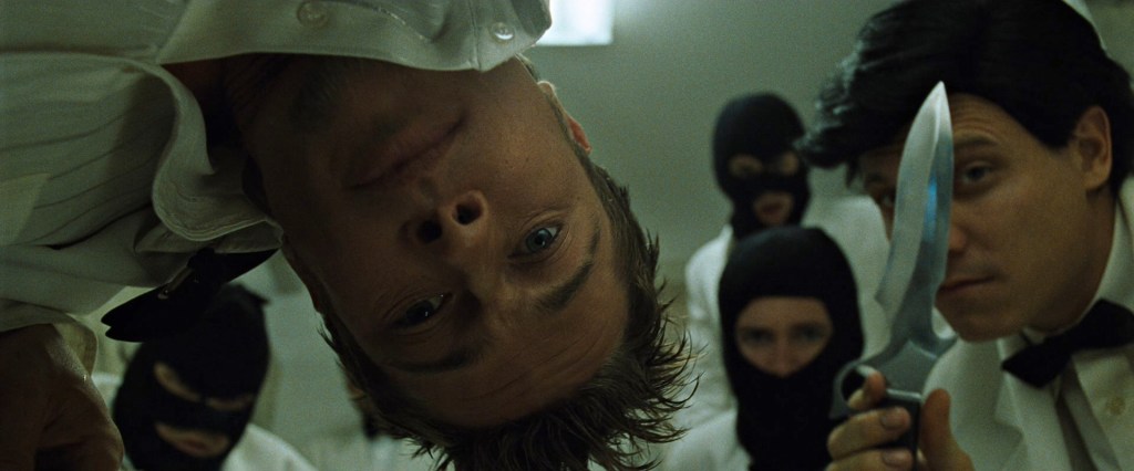 “Hi. You’re going to call off your rigorous investigation… you’re going to publicly state that there is no underground group… or… these guys are going to take your balls” (one of the space monkeys flashes a knife at the frightened man) [6].