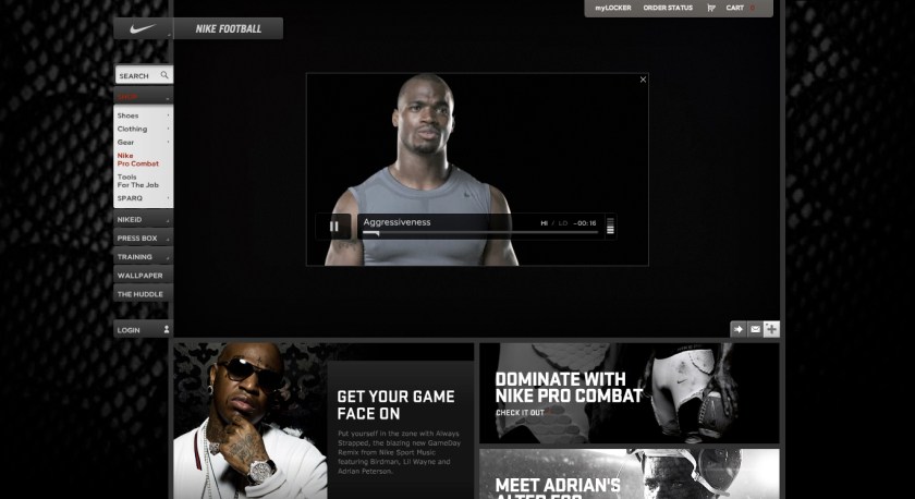 Featuring NFL All-Pro players Adrian Peterson, Brian Urlacher, Justin Tuck and Steven Jackson, highlights Nike’s padding system Nike Pro Combat.