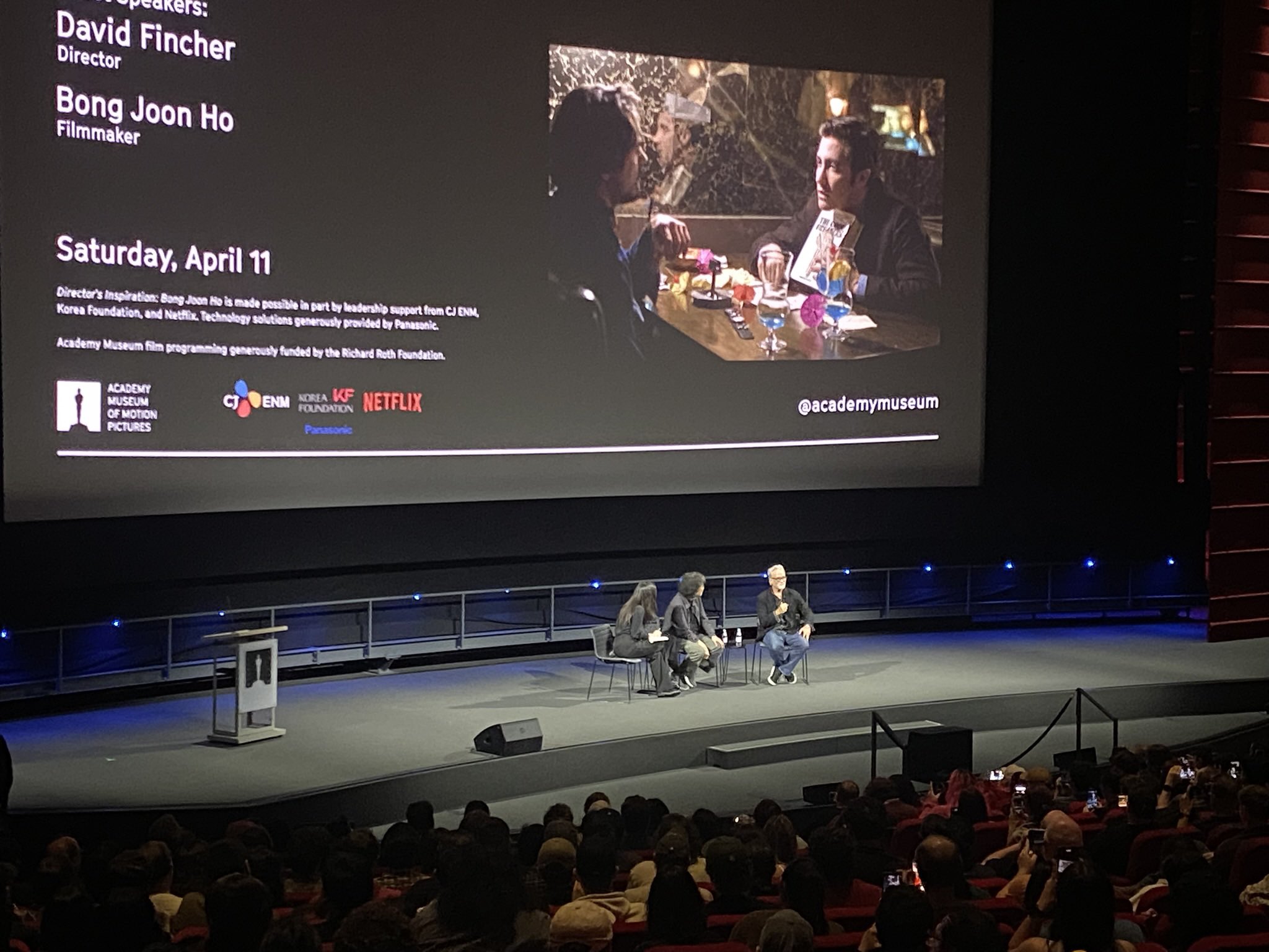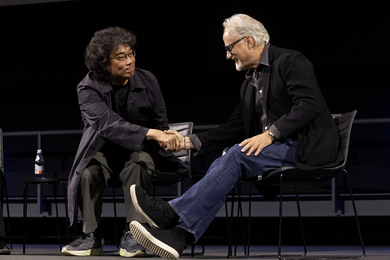 So, anyway, I think it’s the perfect time that I stop talking and introduce our esteemed guest speakers. Thank you so much for joining us tonight, and please help me welcome two incredible, great auteurs of our time, Director David Fincher and Director Bong Joon Ho.
