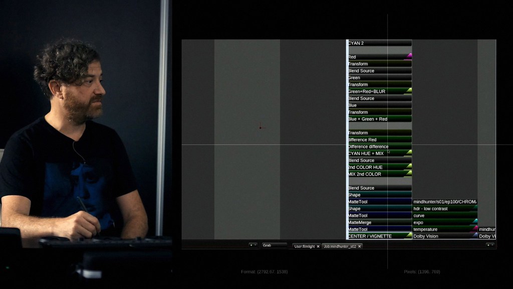 “David directed four episodes of Mindhunter, but he’s the executive producer for the show, and he’s definitely the director of the DI,” he adds. “All of the color, he directed himself, with contributions from Erik.”