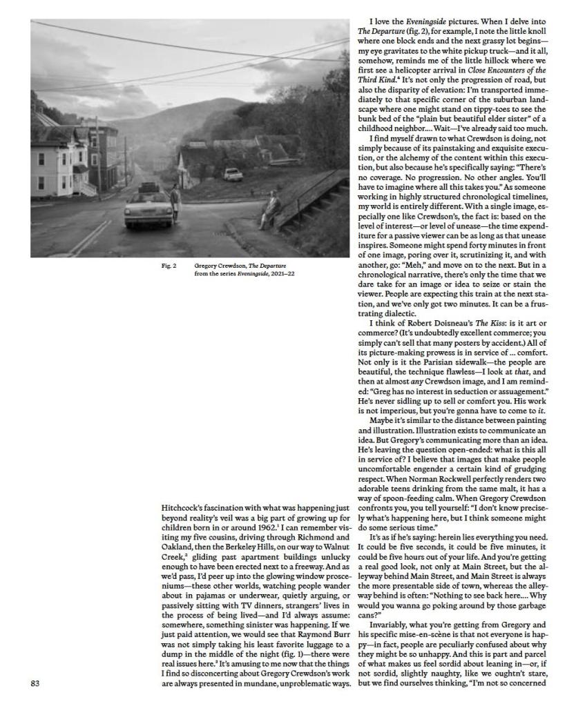 “I’ve always said that I think every artist has one central story to tell,” photographer Gregory Crewdson says on a call from Great Barrington, Massachusetts, where he lives and works. “And they circle around that story, over and over again, over a lifetime, reinventing aspects of it and challenging others and trying to push things forward. But at the core of it, it’s like the central preoccupations remain fixed.”