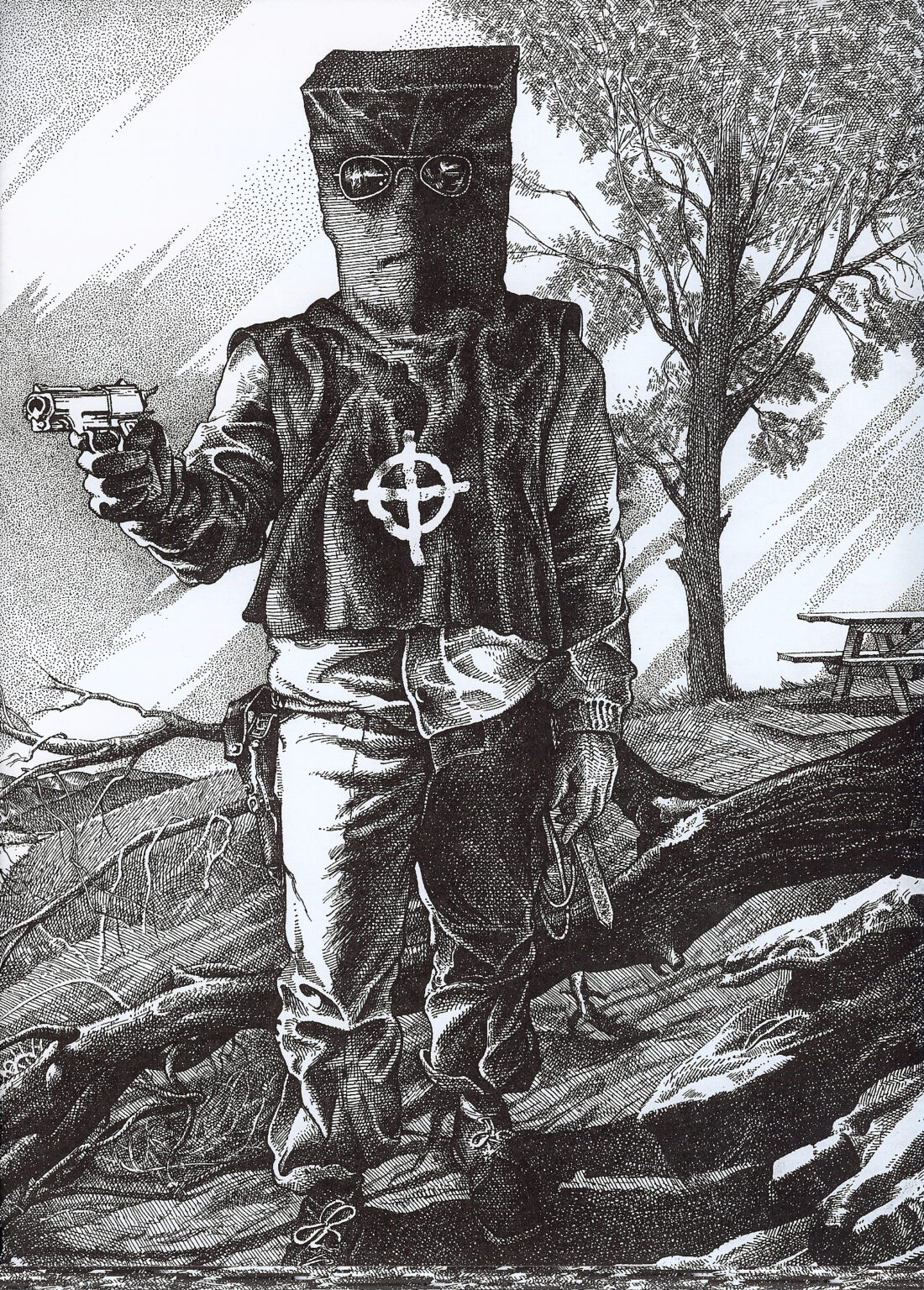 “Zodiac in Costume at Lake Berryessa,” by former Chronicle cartoonist Robert Graysmith. Surviving victim Bryan Hartnell personally described the costume in detail to Graysmith, after his, and Cecilia Shepherd’s, encounter with the Zodiac on Sept. 27, 1969. Photo: Robert Graysmith